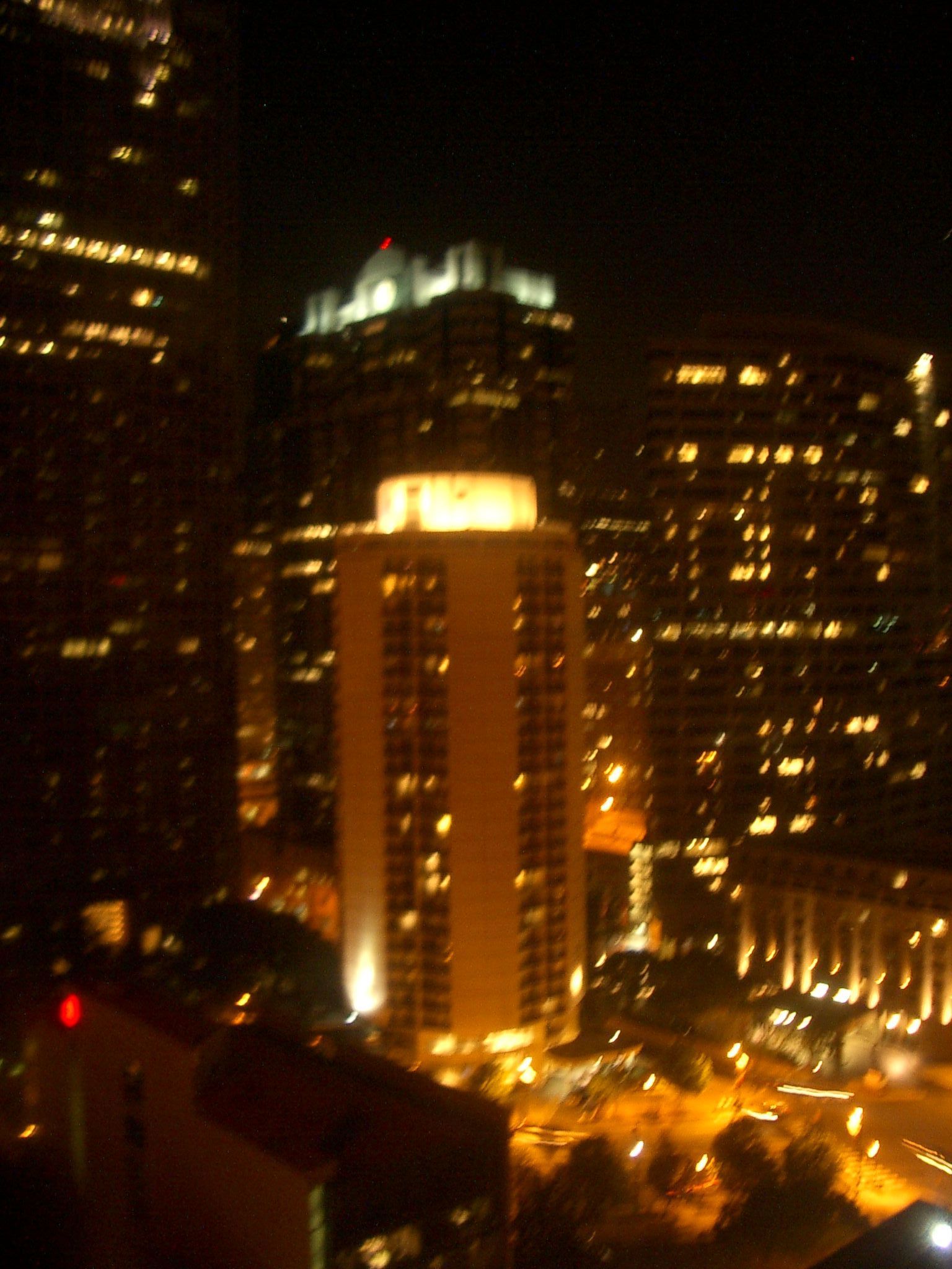 Pointy buildings and a piano (from the 26th floor of my hotel)