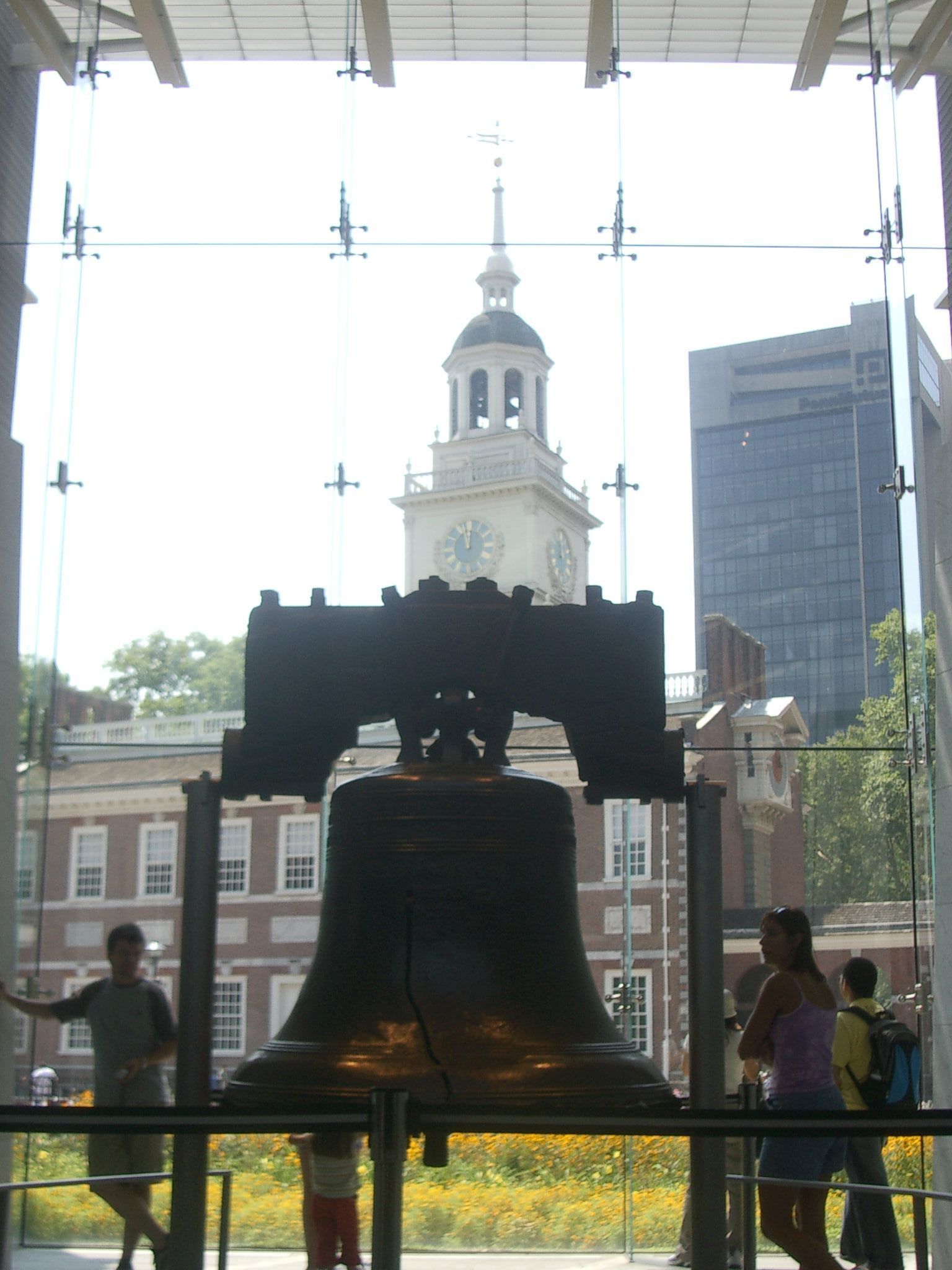 The Liberty Bell with Independence Hall in the background