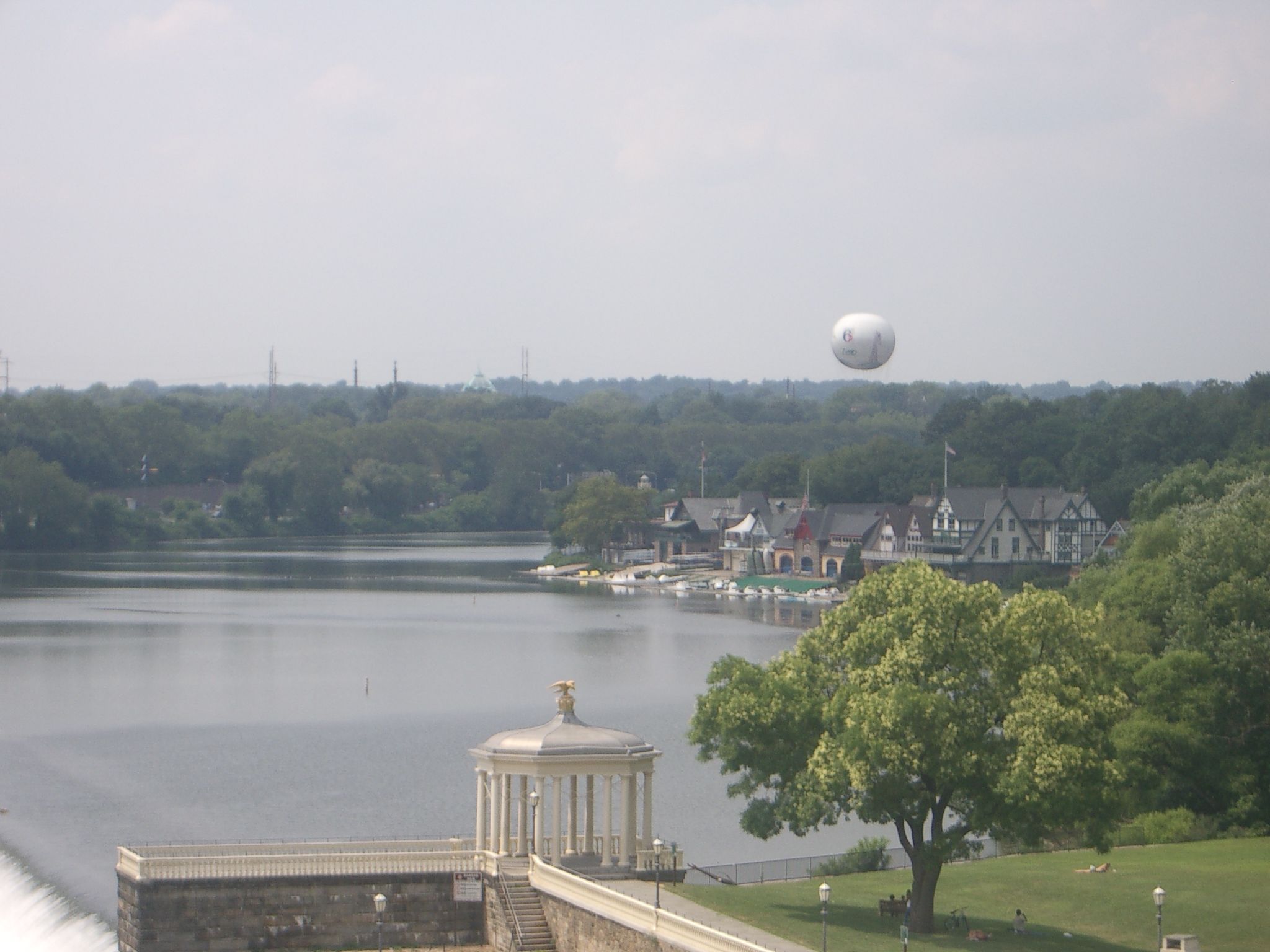 Looking down on Boathouse Row on the river