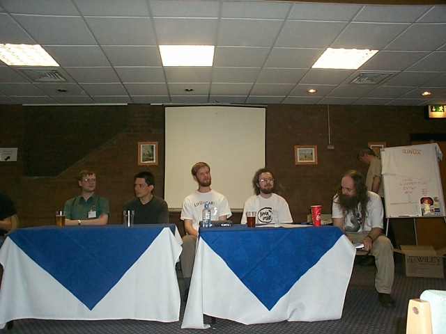 The panel: Stephen Tweedie, Ian Jackson, Michael Meeks, Malcom Beattie and Alan Cox |