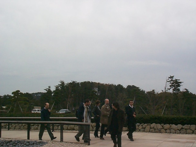 A group of random people from FLOPS walking into a museum |