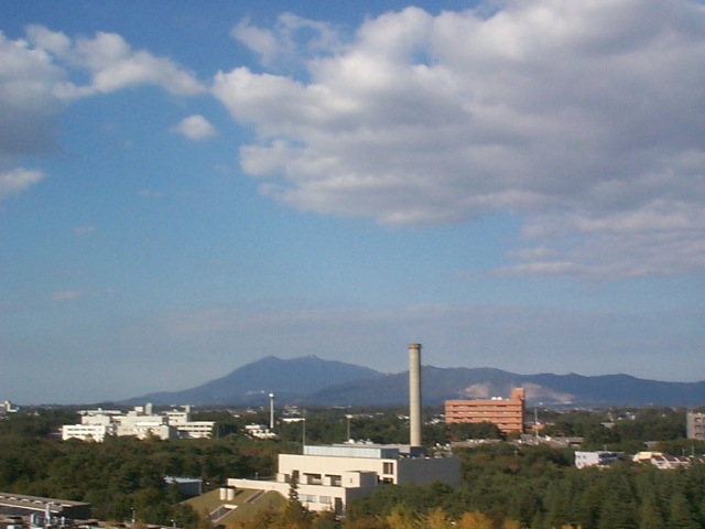 Mt Tsukuba and a smokestack |