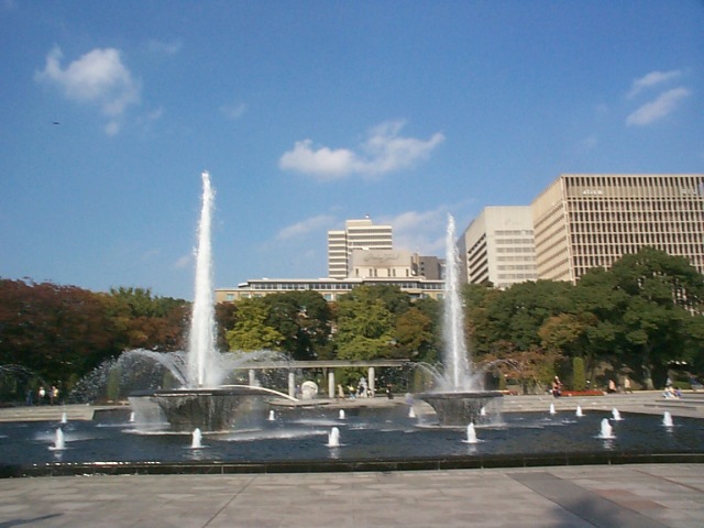 Fountains in a park near the Imperial Palace Gardens |