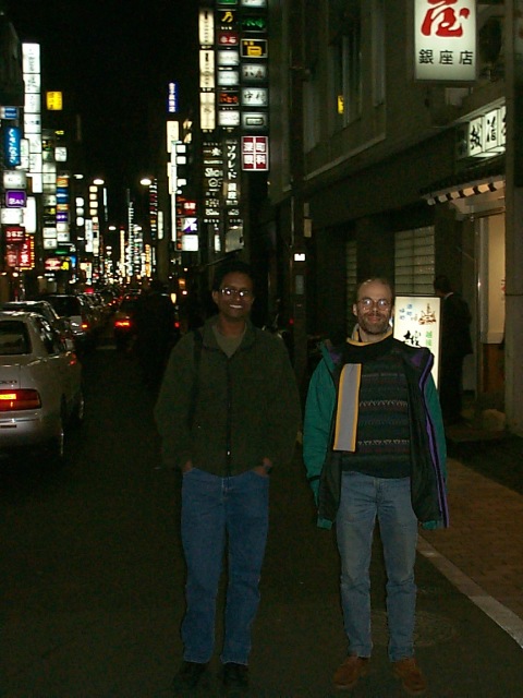 Ganesh and Jeremy in front of Tokyo by night |