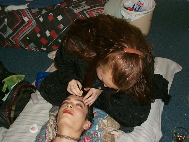 Leanne applies makeup to doop |