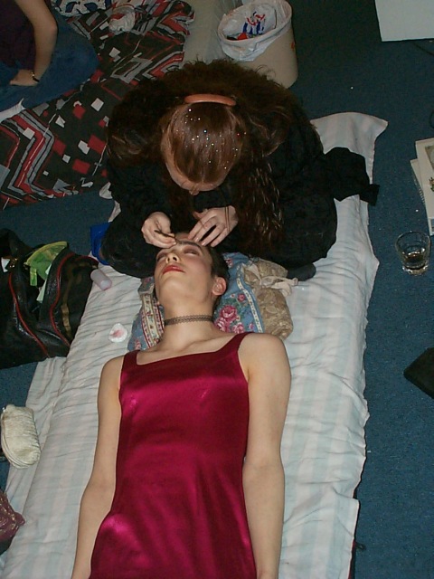 Leanne prepares the corset |