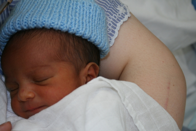 He's so small compared to his "0-3 months" pram suit - which probably won't begin to fit him for 6 months! |