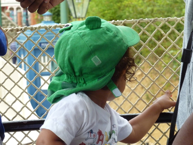 Alex climbing the tram stairs |