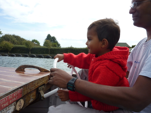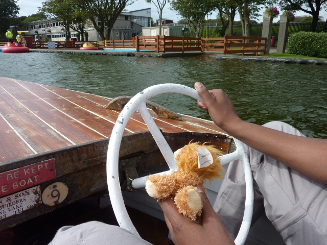 Roarie on the boat, at the boating lake (Onchan)
