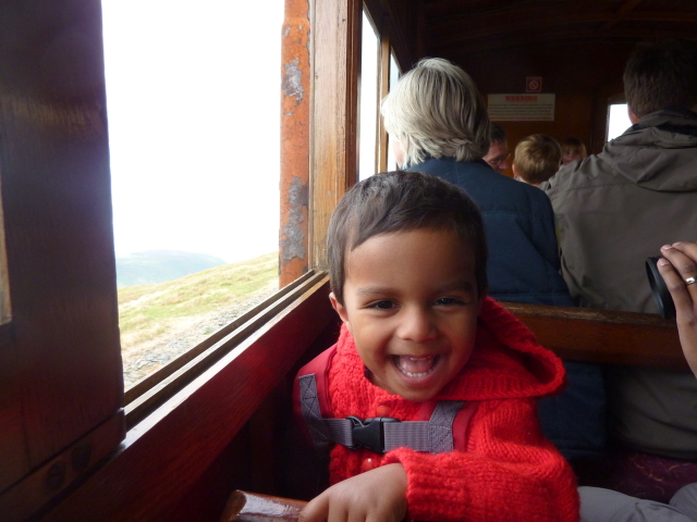 Alex and Granny on the carriage (Alex a bit concerned that Daddy won't get on) |