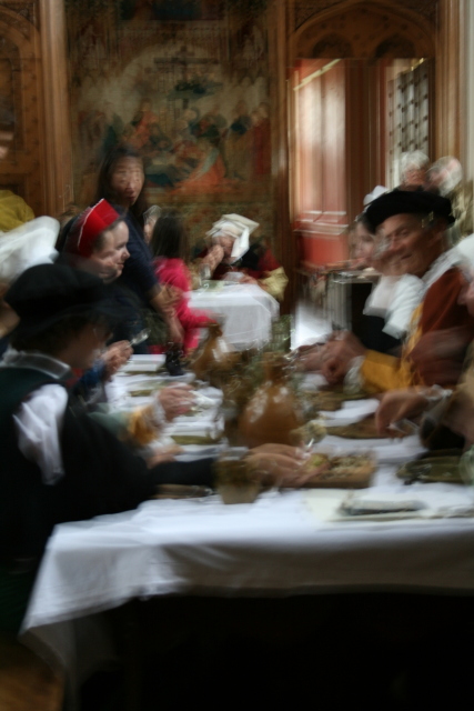 In the hall kitchen |
