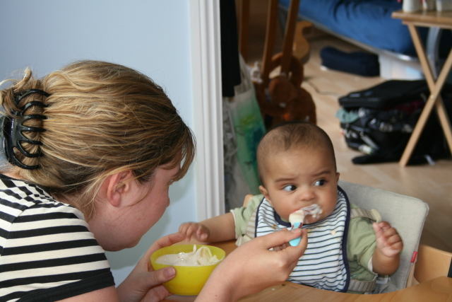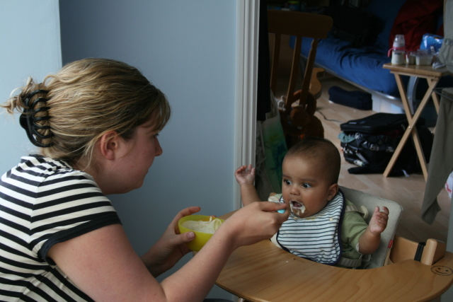 Angharad tries feeding him |