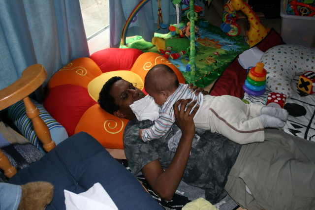 Look how good I'm getting at sitting (Daddy poised...) |