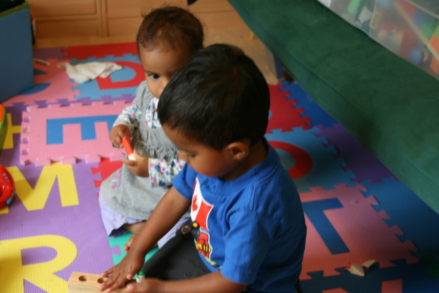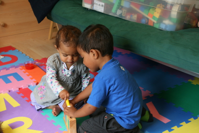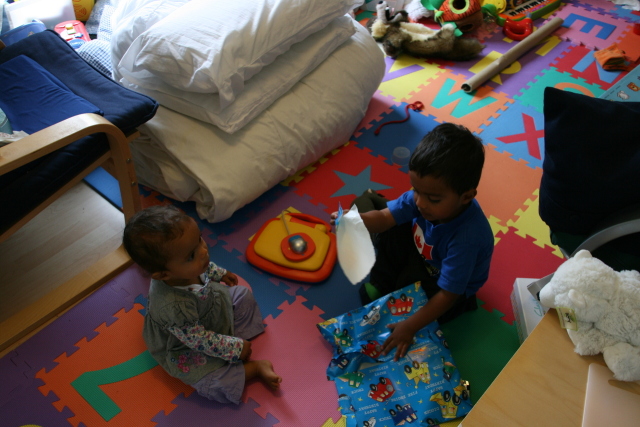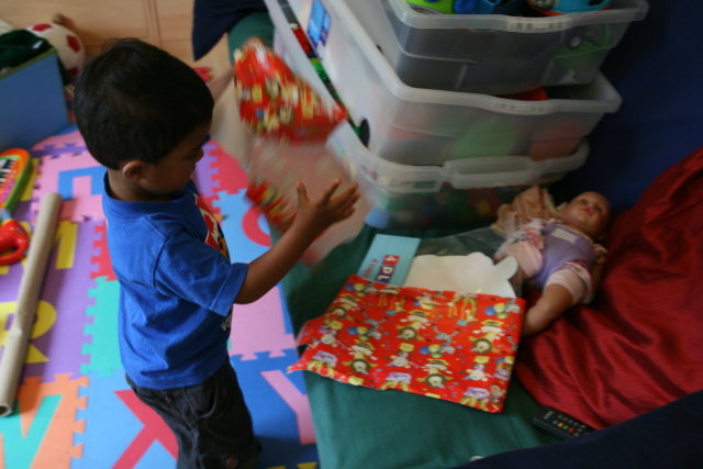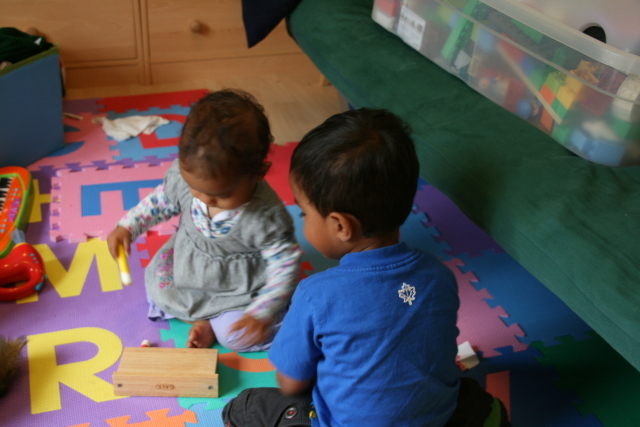 Alex helping Heather play with her pop-up toy