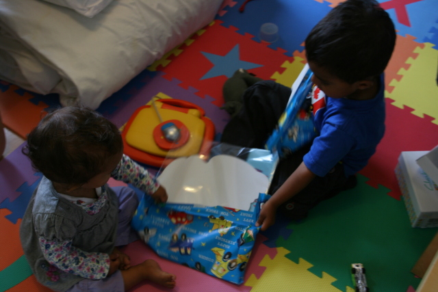 Alex helping Heather open hers