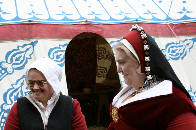 From left to right; Mistress Fyshe, wife of the Queen's tailor, Lady Margaret de VERe, ?, Amys Townsend, tutor to the young de Veres, Hettie Townsend, Hal Townsend |