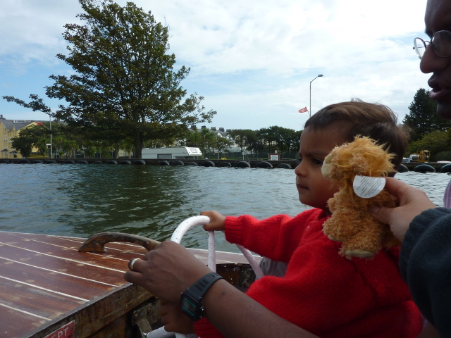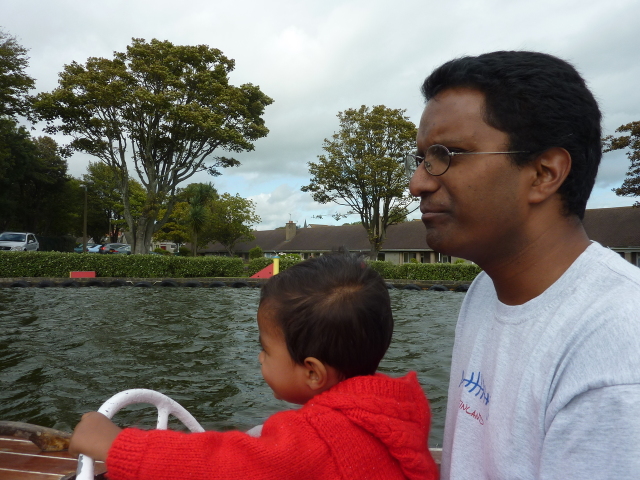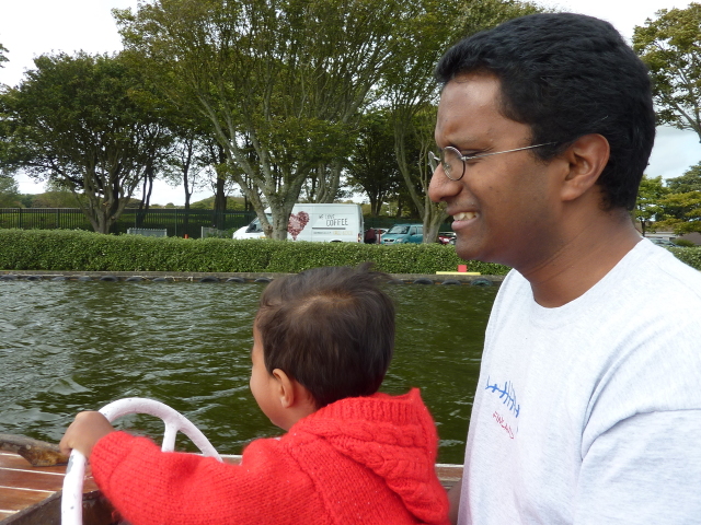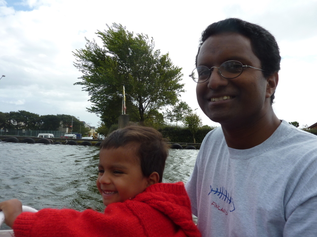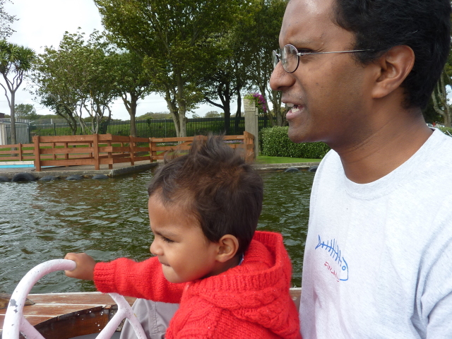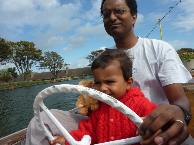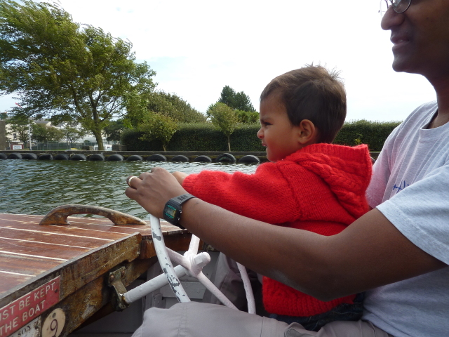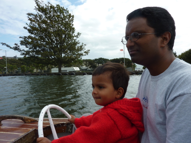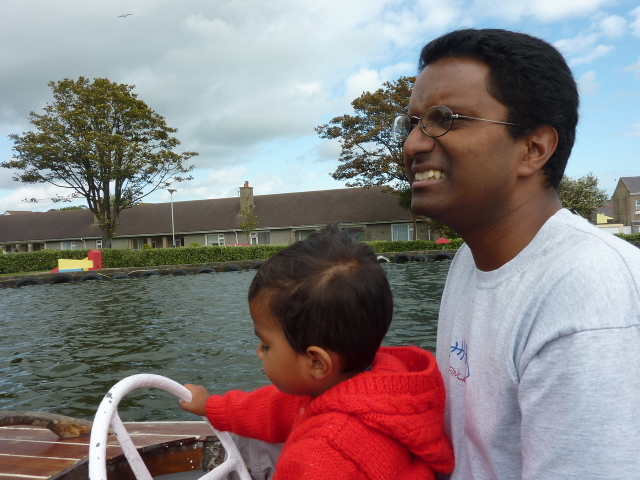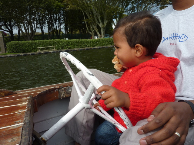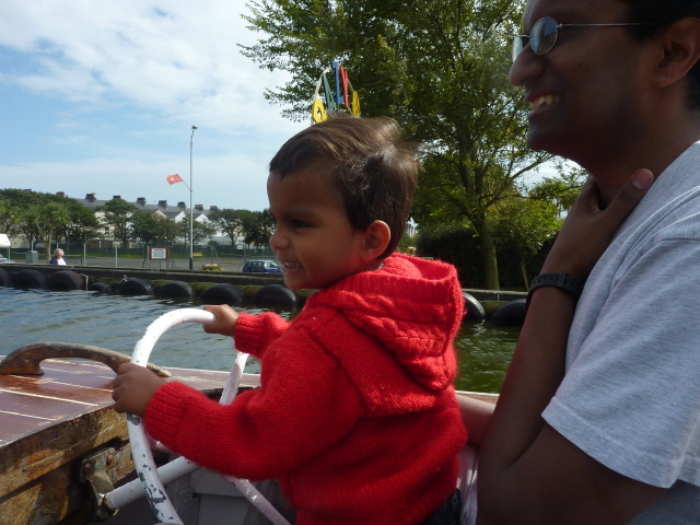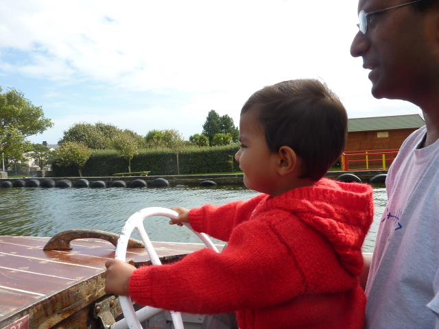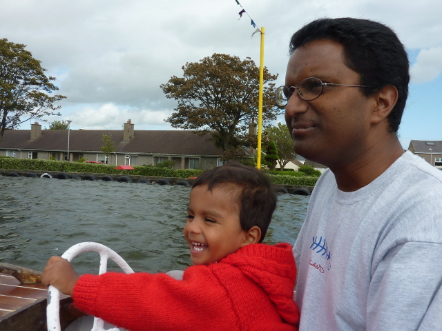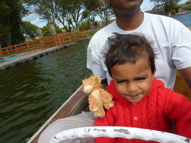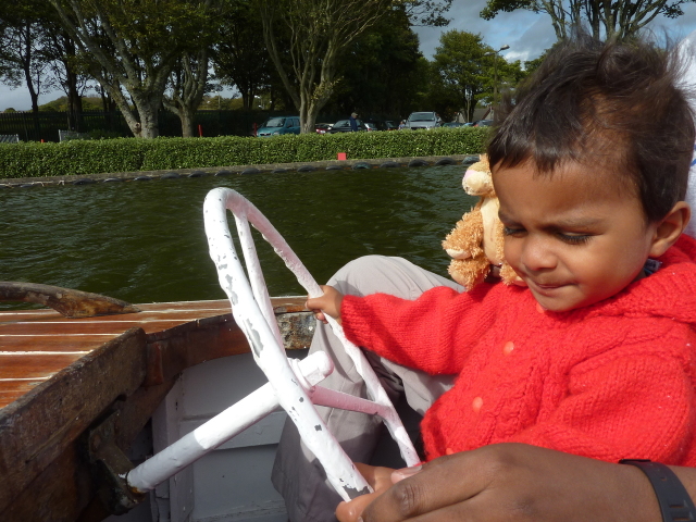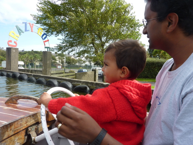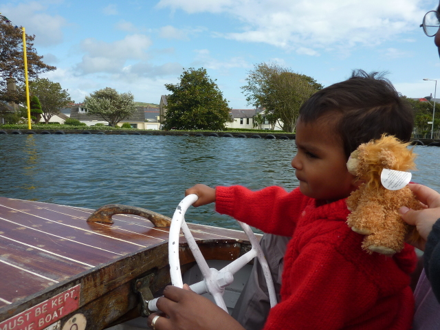 Roarie on the boat, at the boating lake (Onchan) |