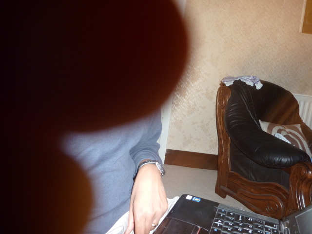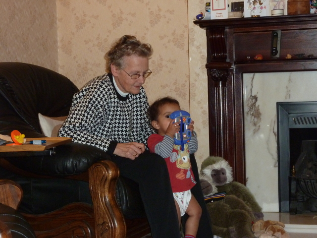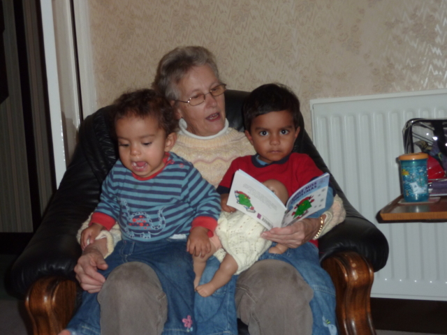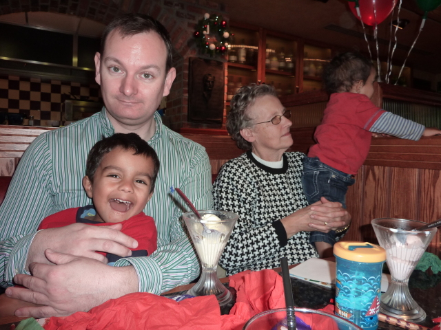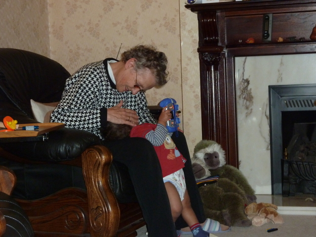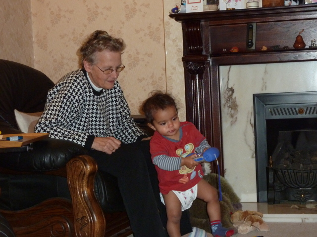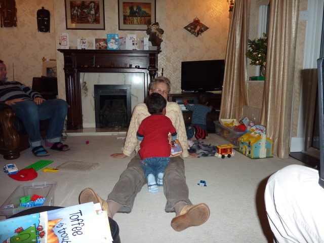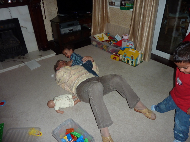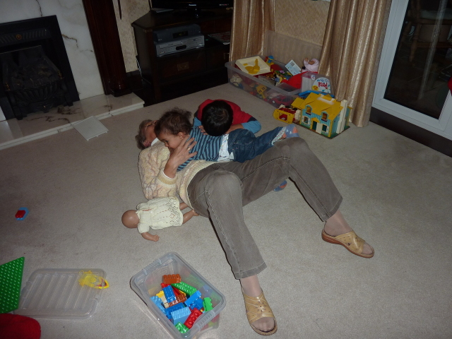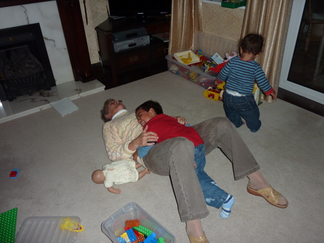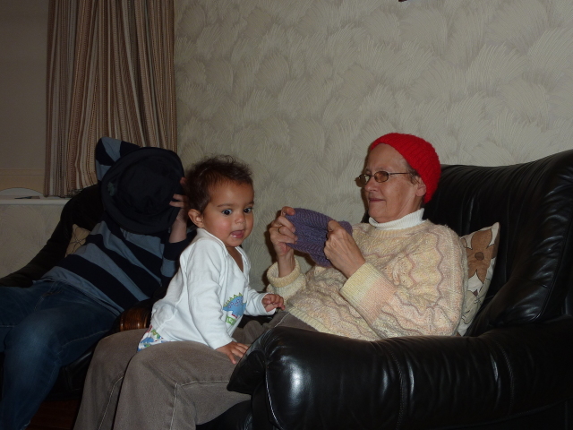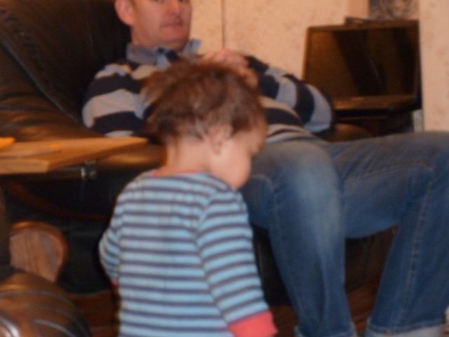Uncle David juggles Heather, laptop and cheese. |