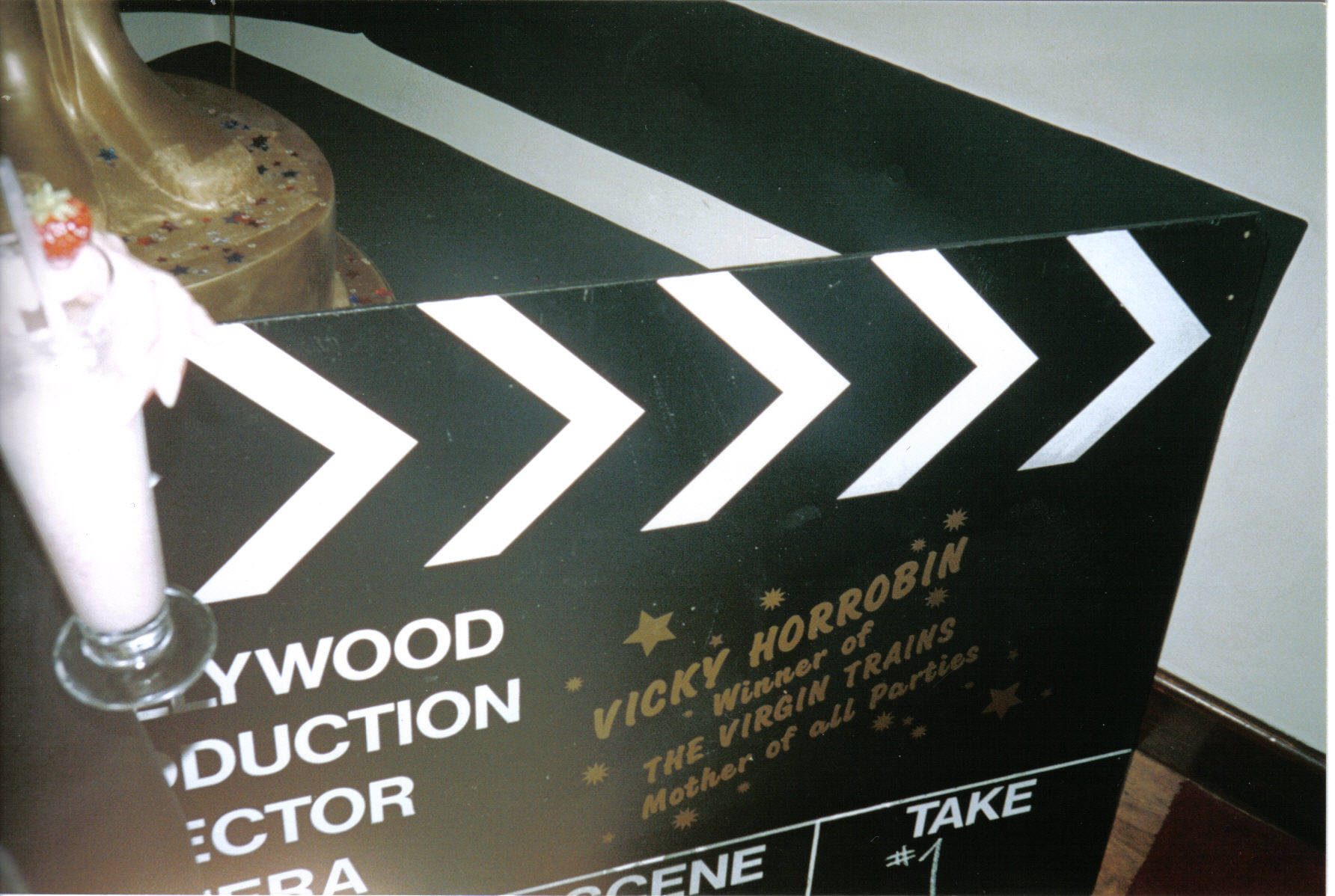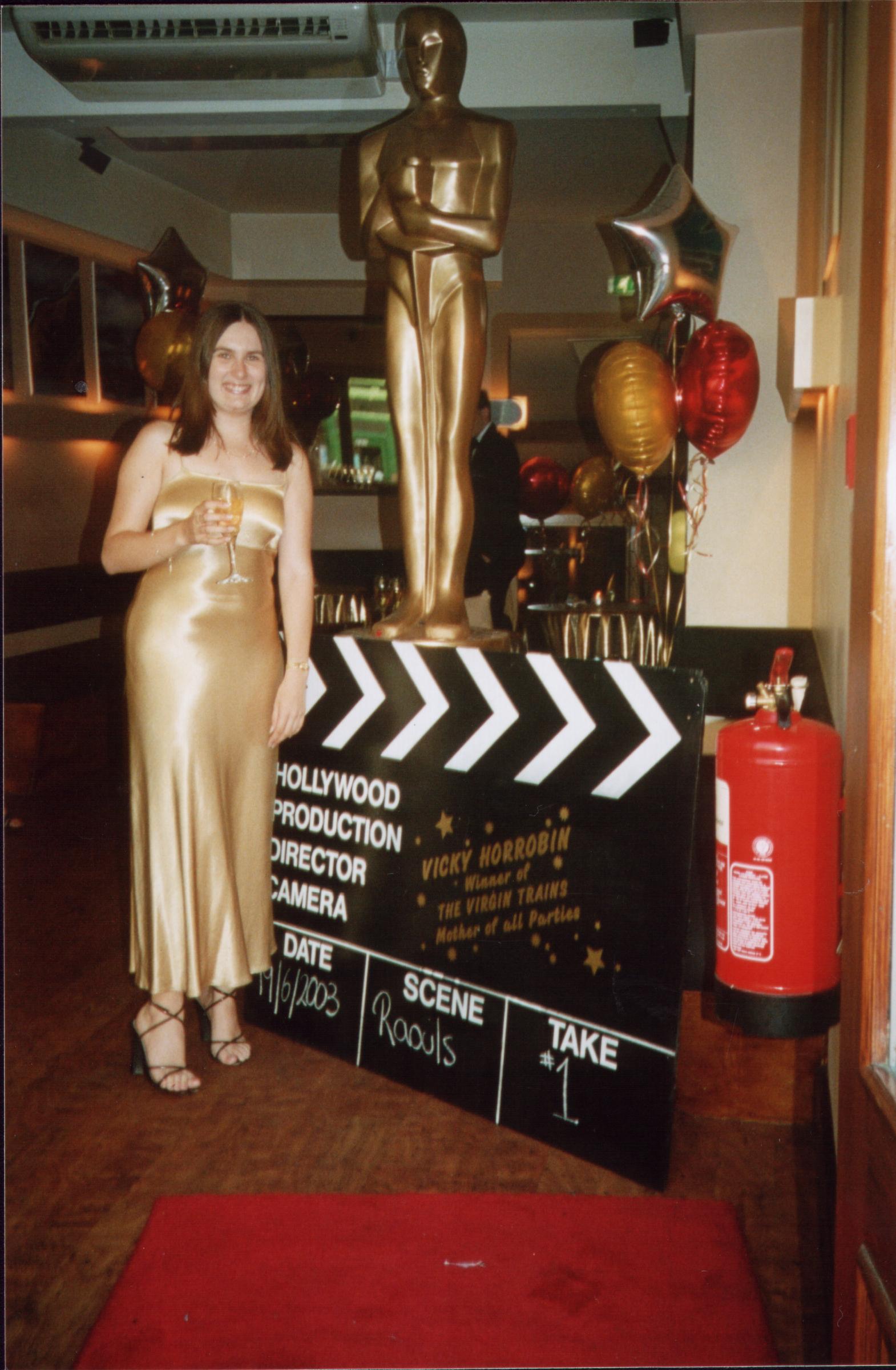 Vicky, with a smaller oscar and the clapperboard |