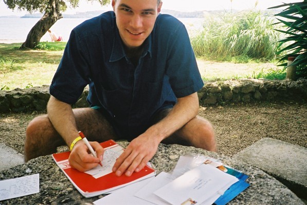 | Ross writing letters on his world famous Journal | |