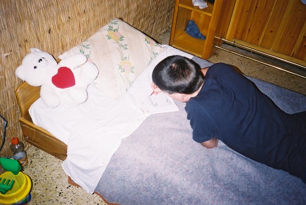 | Colouring In. I think. His feet stink. I bet. | |