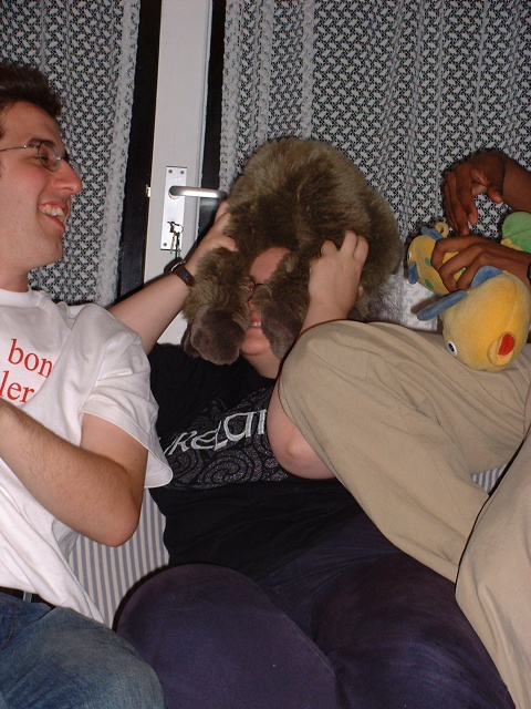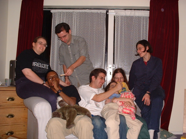 group photo (on timer) or how many people can fit on Otters' couch? (in memory of Arco Showers) |