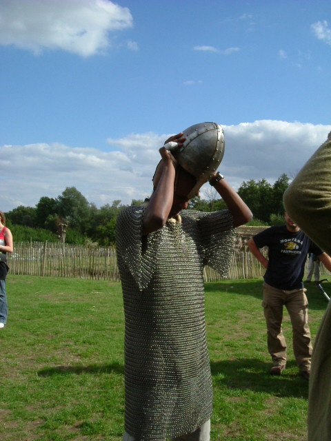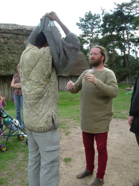 Ganesh tries on a mail shirt - first the padding