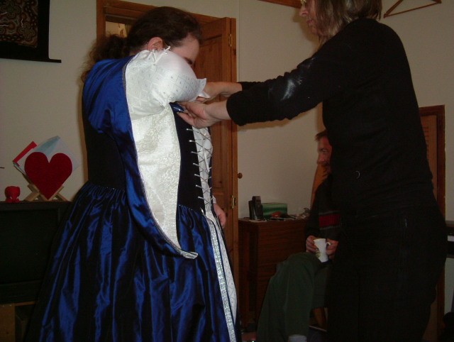 The forepart is laced onto the petticoat to hold it in place. |