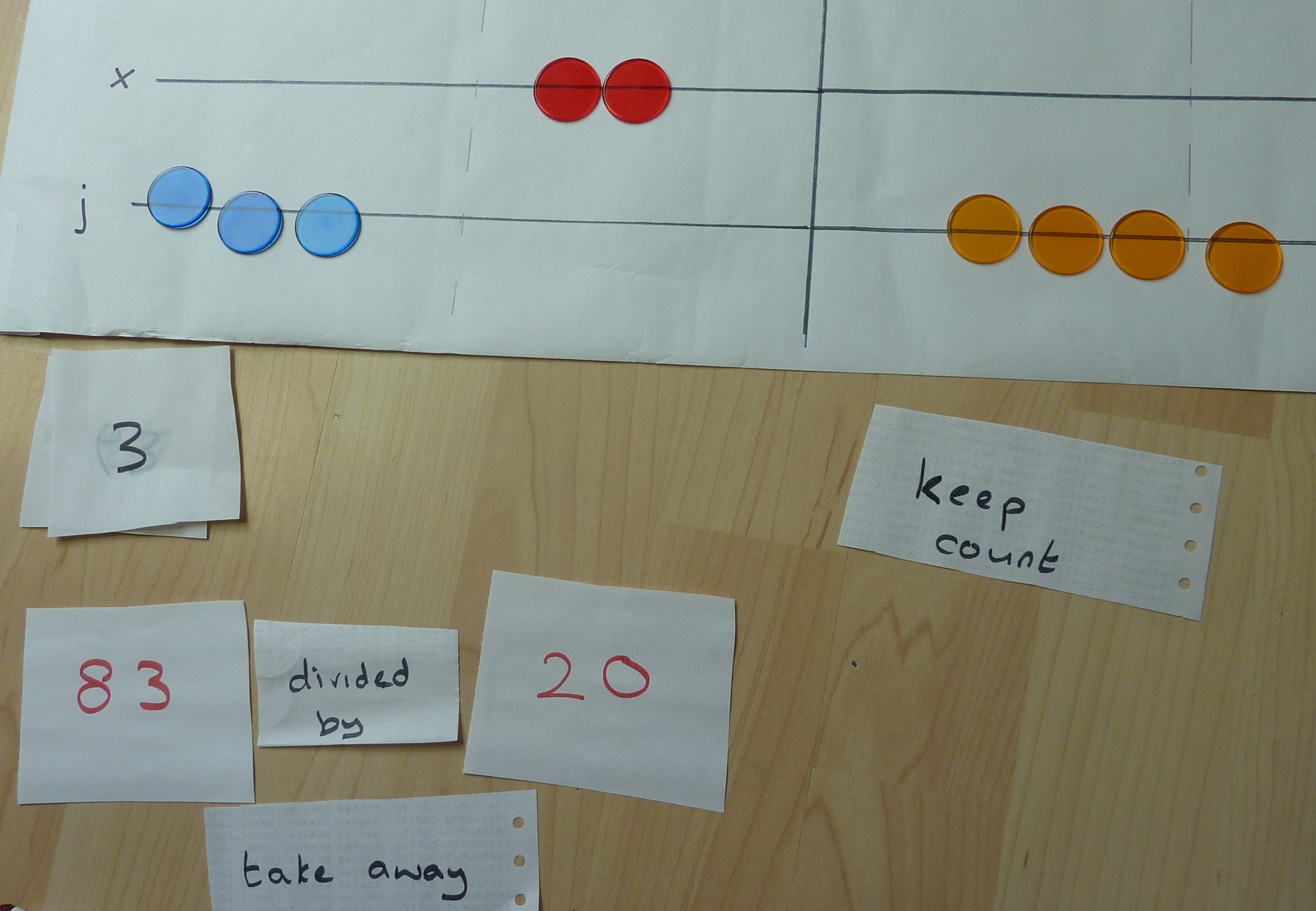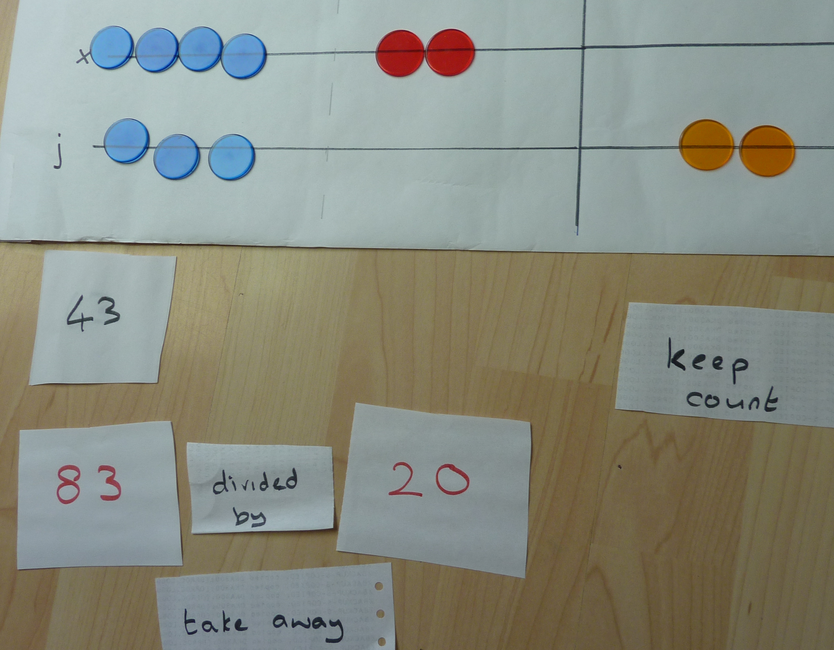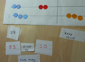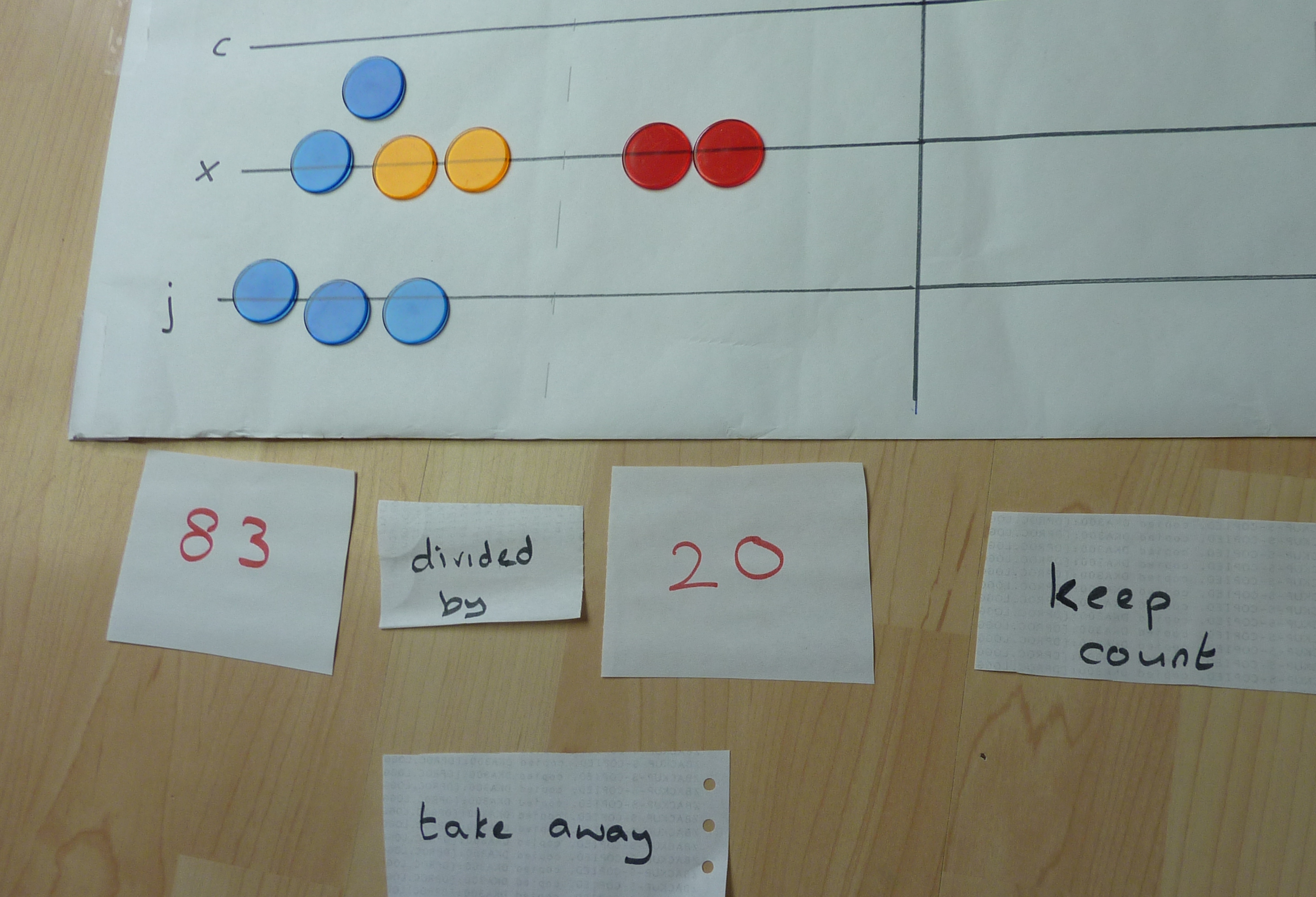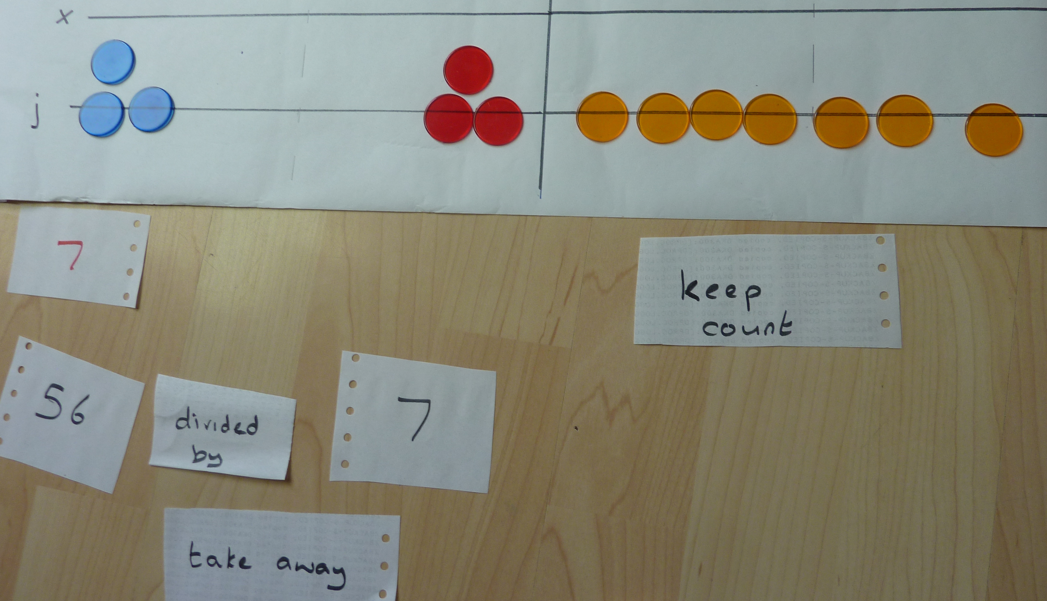 Division is a completely different set of tricks to multiplication, but once again you only need to know the process, and not actually have any times tables or understanding of what's happening, to make it work. To divide, we just take away multiple times. You did practise your taking away, didn't you?